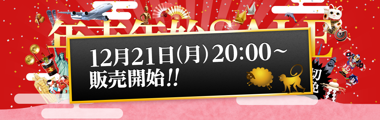 株式会社DeNAトラベル(本社:東京都新宿区、代表取締役社長:中野 正治)は、オンライン総合旅行サービス「DeNAトラベル」(URL:http://www.skygate.co.jp)において、海外往復航空券やツアーなどを特別価格で販売する「年末年始SALE」を2015年12月21日(月)20時から順次開催します。本日から開始する第1弾に続き、第2弾を2016年1月1日(金)0時から、第3弾を1月4日(月)20時から、第4弾を1月8日(金)20時から実施する予定です。