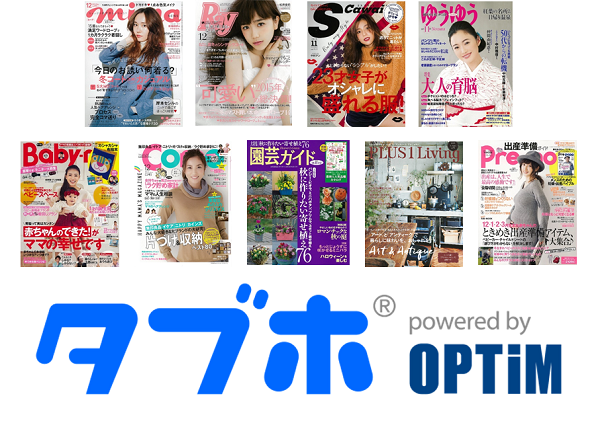 ビジネス向けスマートフォンアプリ・タブレットアプリのマーケットリーダーである株式会社オプティム(以下 オプティム)は、トータル電子雑誌サービス「タブレット使い放題・スマホ使い放題(タブホ)」へのコンテンツ提供について、新たに株式会社主婦の友社※1(以下 主婦の友社)と業務提携を行い、「Ray」・「mina」・「S Cawaii!」・「ゆうゆう」をはじめとした合計9誌のコンテンツを追加いたしました。これにより、「タブレット使い放題・スマホ使い放題(タブホ)」にてお楽しみいただけるコンテンツが、読み放題サービス国内最大※2となる合計226誌750冊以上※3となりました。