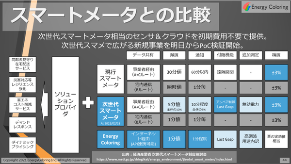 株式会社EnergyColoringは、スマートフォンをIoT電流計として活用した消費電力内訳推定クラウド「エナジーカラリング」の技術を使い、経済産業省 次世代スマートメーター制度検討会で検討中のスマートメータ相当のPoCインフラ(1分値1分遅れ)を初期費用不要で提供します。