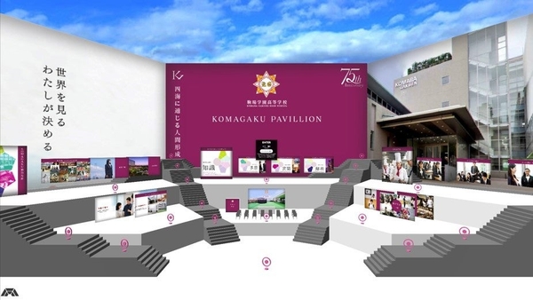 このたび探究学習を積極的に取り入れている駒場学園高等学校において、2年生が体験旅行を通じてまとめた提案を発表する最終プレゼンテーション大会を開催いたします。このプレゼンテーション大会に仮想空間「メタバース」で開催する運びとなりました。メタバース空間を活用することで、体験旅行先の自治体の皆さまや下級生、保護者をはじめ、場所や時間、人数を制限することなく参加いただくことができ、カーボンニュートラル実現に向けてCO2排出量にも配慮し、コロナ禍でも不自由なく開催することができます。また、スポンサー企業の応援なども加わり、メタバース空間の特長を生かしたプレゼンテーション会場を実現します。