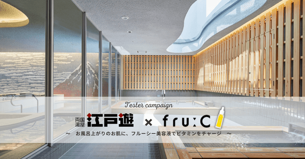 キャンペーン期間中は、フルーツ由来のビタミンC美容液「fru:C(フルーシー)」を女性脱衣所にてご用意。