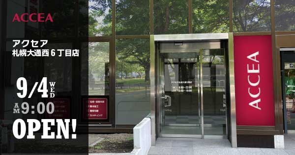 株式会社アクセア(本社:東京都千代田区、代表取締役社長:吉田忠司、以下アクセア)は、アクセア札幌大通西6丁目店を2024年9月4日(水)にオープンいたします。