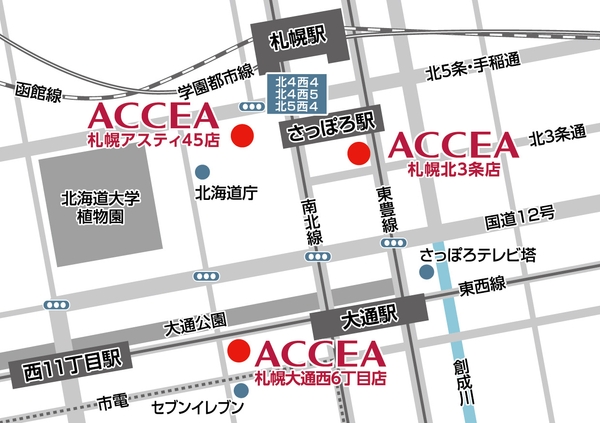 アクセア札幌大通西6丁目店は、アクセア 札幌アスティ45店、アクセア札幌北3条店に続き、北海道札幌市の3店舗目の出店となります。