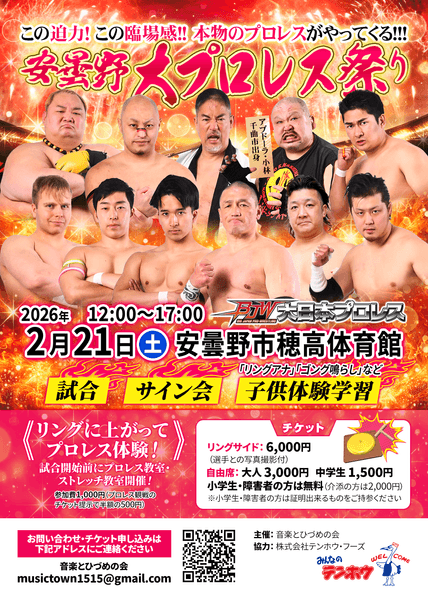 プロレスで街を元気に!『安曇野大プロレス祭り』2月21日(土)開催 ~小学生・障害者は無料招待!チャリティで繋がる地域交流の輪~