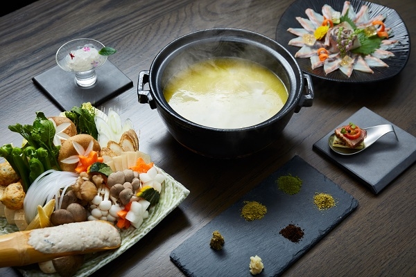 「温活チョウザメ鍋」は清らかな水源がある谷關地域で盛んに育てられているチョウザメを、コラーゲンなどのタンパク質も豊富に含まれる白湯仕立ての鍋にして提供します。お鍋の具にはチョウザメのほかに、身体を温める根菜類やネギ、キノコ類を多く使い、台湾のスパイスである馬告(マーガオ)やシナモン、生姜のピューレなどの薬味と合わせて温活の効果を高めます