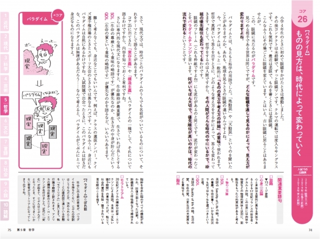 単なる語句解説ではなく、身近な例やイラストも豊富。ストーリー仕立ての解説を楽しく読み進めながら、現代文の“コア(核心)”をいつの間にか学ぶことができるでしょう。