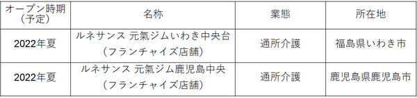 また、2022年夏以降に「ルネサンス 元氣ジムいわき中央台」、「ルネサンス 元氣ジム鹿児島中央」の開設を予定しております。