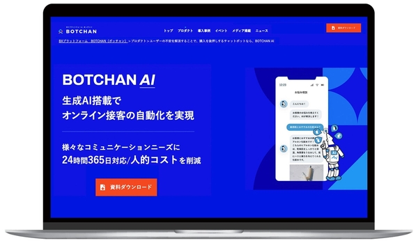 「BOTCHAN AI」は、企業コンテンツや接客ナレッジを生成AIと掛け合わせることで、24時間365日オンライン上で顧客に寄り添った接客対応を実現することが可能です。