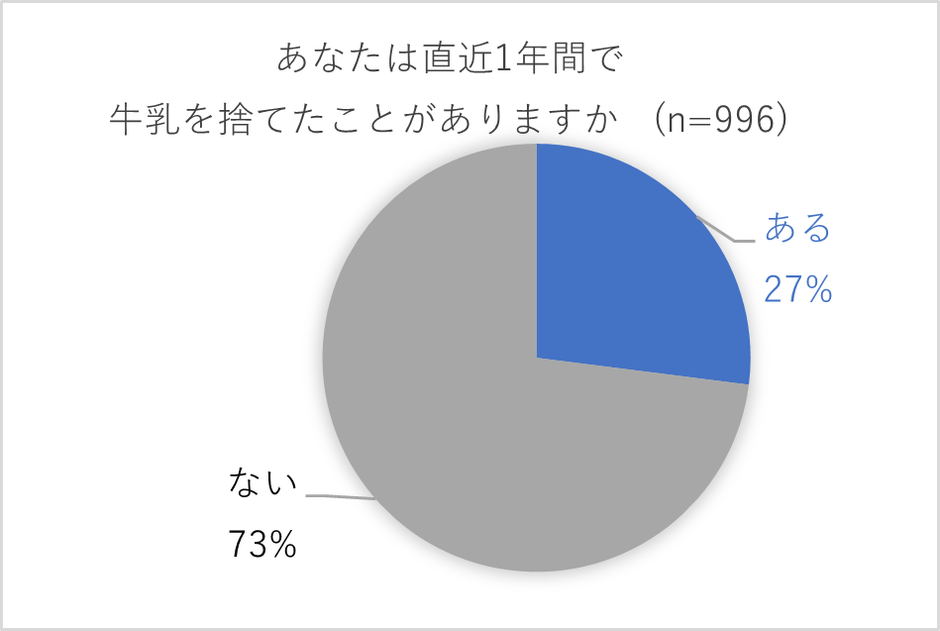 少人数世帯の約3割(27%)の人は牛乳を捨てたことがあると答えました。
