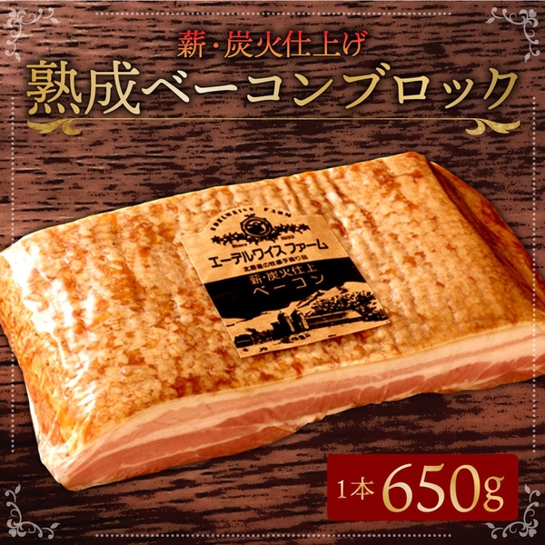 【北海道北広島市ふるさと納税】株式会社エーデルワイスファームが提供する「薪・炭火仕上げ熟成ベーコン 650g」を受付中です!