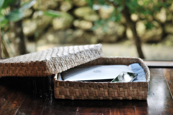 沖縄の原風景が残ると言われる竹富島で、青い海、南国の花、三線の音色など、ゆっくりと流れる島時間の中でデジタルを忘れて滞在します。チェックイン時にデジタル機器を預かり、滞在中はデジタル機器から離れた環境を提供します。デジタル機器を保管するボックスは、竹富島で伝承されてきた島に自生する植物を素材にした、すべて手作業で行う民具づくり「手業(てぃわざ)」で作られたものです。