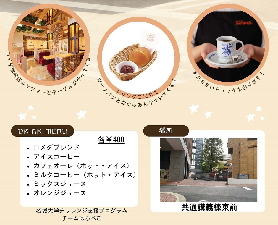 ・「チャレンジ支援プログラム」に参加する女子学生3人の自主企画として、株式会社コメダに提案。コメダ珈琲店として大学内でモーニングサービスを提供するのは初めて。