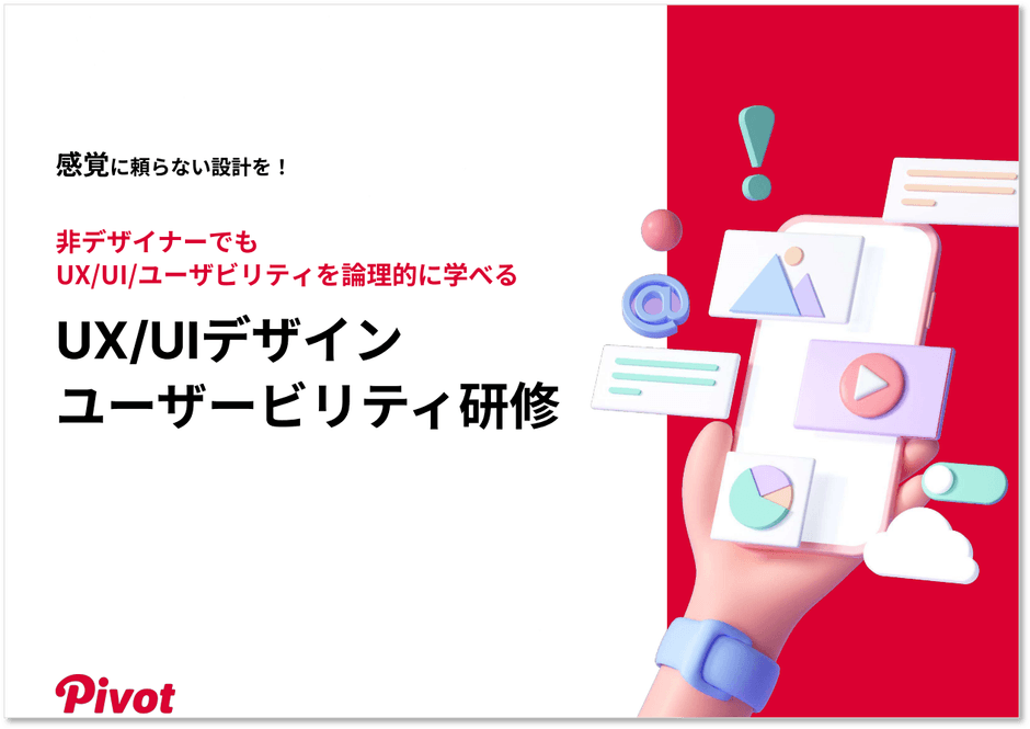 PIVOTの「UX/UIデザイン・ユーザビリティ研修」は、デザインの専門知識がない方でも、感覚に頼らず論理的・体系的なアプローチで設計手法を学べるプログラムです。