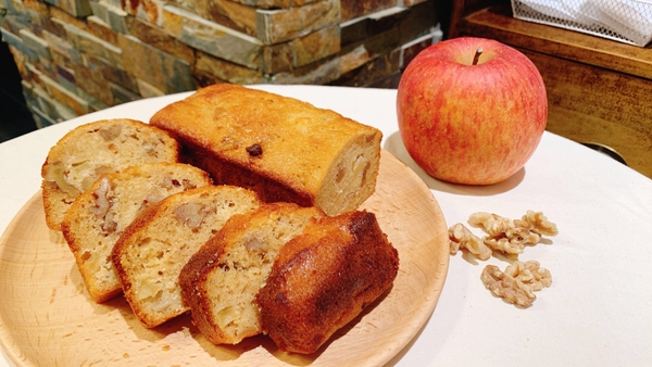 りんごの甘みとくるみの食感が、ふわふわのパウンドケーキ生地とベストマッチ!