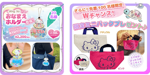 また、Wチャンスキャンペーンとして、お申込みいただいた先着100名様に「HELLO KITTY SMILE限定ミニバック」をプレゼントいたします。