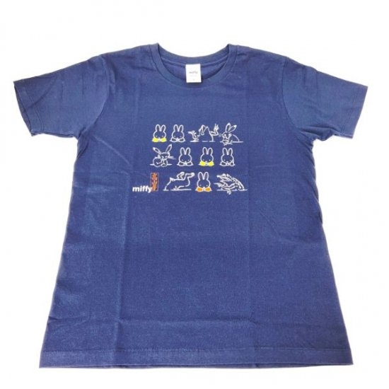 ネイビーのTシャツには、ミッフィーがたくさん登場します♡イエローやオレンジの服を着たミッフィーたちに紛れて、動物たちも並んでいる賑やかなデザインですよ♪