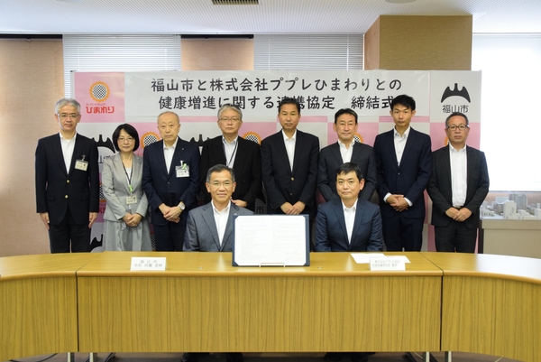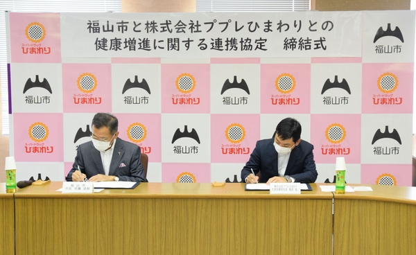 広島県福山市では、株式会社ププレひまわりと連携協定を締結し,相互に連携・協力し,地域に根ざした健康増進と健康寿命の延伸に向けて取り組みます。