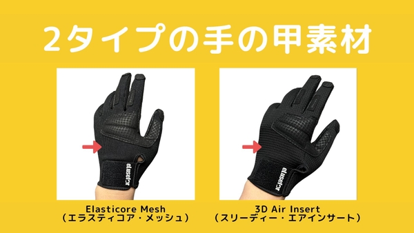- 衝撃吸収ガード: 手の甲にある関節ガードが衝撃から手を守る