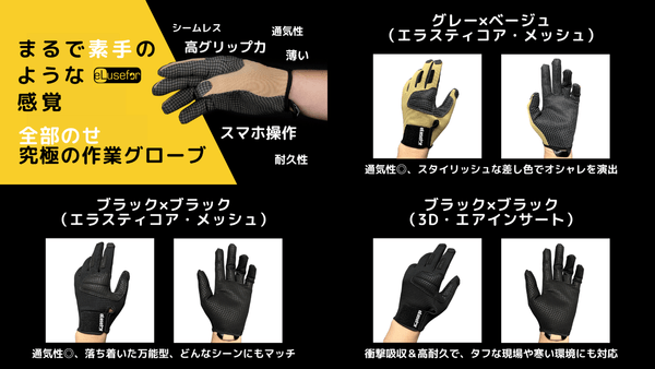eLuseforグローブは、従来の作業用手袋が抱える多くの問題点を解決した画期的な製品です: