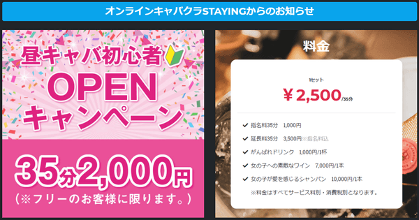 昼キャバ専門店 オンラインキャバクラ 『STAYING』 35分2,000円~!
