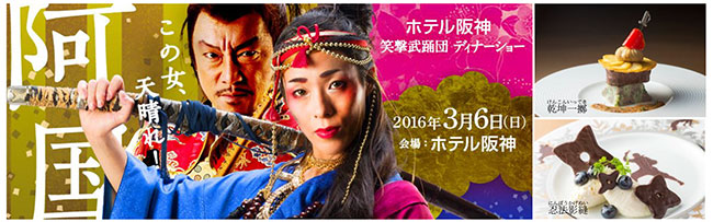 摩訶不思議なメンバーたちが織り成す「新感覚オリジナル時代劇」 笑撃武踊団ディナーショー「阿国」 2016年3月6日(日)ホテル阪神10階宴会場「ザ・ボールルーム」にて開催