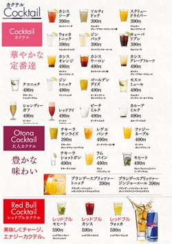 (定番カクテル17品・大人カクテル8品・レッドブルカクテル3品)