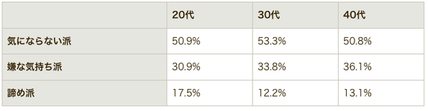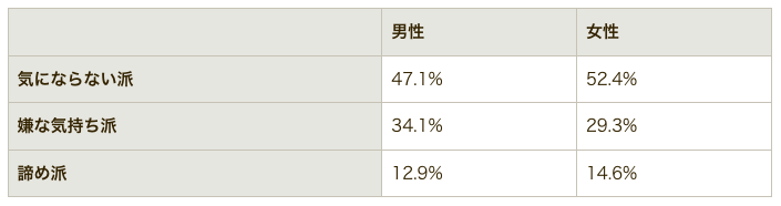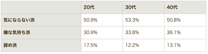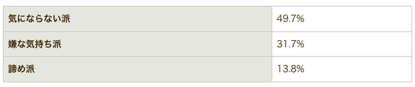気にならない人と嫌な気持ちを抱く人とどちらが多いのか、カテゴライズして比較してみました。