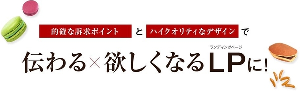 弊社では、スイーツの美味しさの理由や、何故美味しいのか?どの様に美味しいのか?等をしっかりと説明できる「構成」を作成し、食べてみたいと思える「デザイン」でLPを制作するサービスを開始いたしました。
