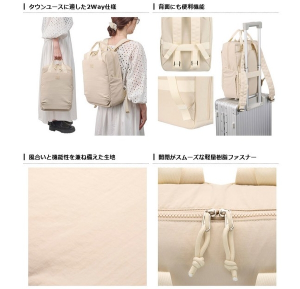 インナーケースを取り外せば、通常のバックパックとしても使用可能です。大きなハンドルが付いているので、手持ちでも快適に持ち運べます。バックパックとしても手提げバッグとしても使える2WAY仕様は、タウンユースにぴったりです。
