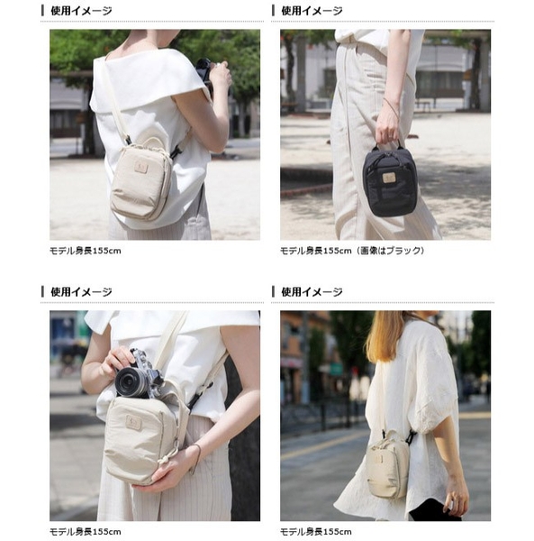 コンパクトカメラや小型ミラーレス一眼カメラを、スマートフォンやお財布などと一緒にシンプルに持ち運ぶのに最適なサイズです。程よいクッション性があり、かさばらずに安心してカメラを持ち運べます。