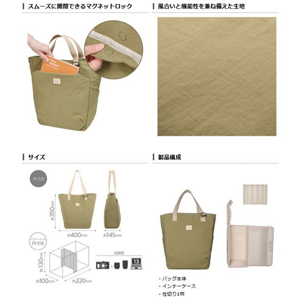 インナーケースや中仕切りを外せば、カメラを持ち運ばない日でも軽くて使いやすい通常のバッグとして活躍します。