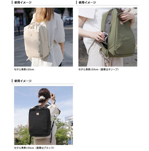 コットンのようなナチュラルな風合いと、ナイロンの優れた機能性を兼ね備えたタスランナイロン生地を採用したカメラバッグシリーズ。手触りが良く落ち着いたマットな質感は、カジュアルからアウトドアまでどんなシーンにも馴染みます。