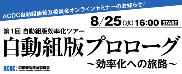セミナータイトル:第1回「自動組版効率化ツアー」自動組版プロローグ~効率化への旅路~