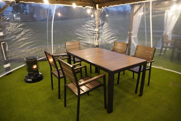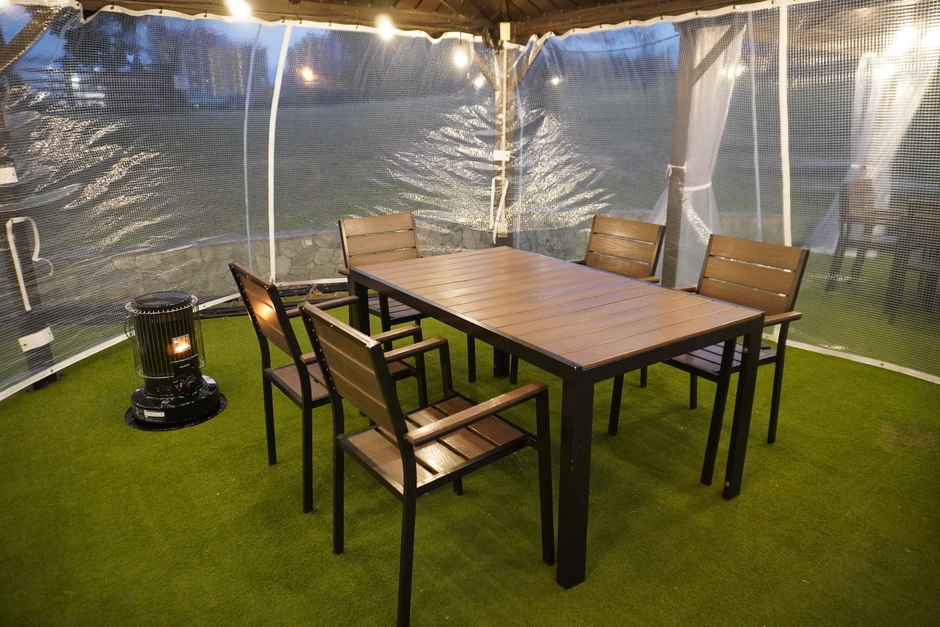 冬季はビニールカーテンとストーブを設置しておりますので、寒さをできるだけ遮りながら、アウトドア体験をお楽しみいただけます。