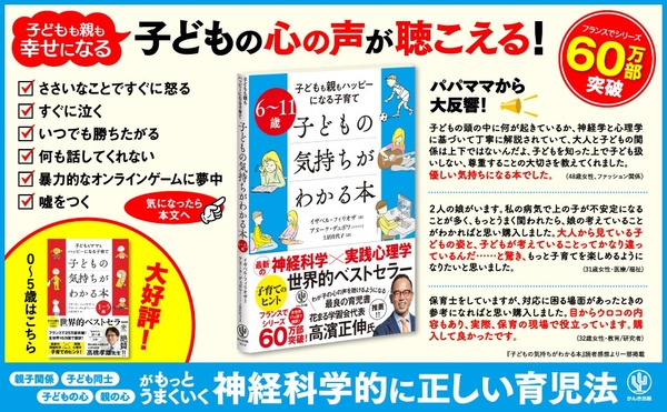 株式会社かんき出版(本社:千代田区 代表取締役社長:齊藤龍男)は、『6~11歳 子どもの気持ちがわかる本』(イザベル・フィリオザ/著 アヌーク・デュボワ/イラスト 土居 佳代子/訳)https://kanki-pub.co.jp/pub/book/details/9784761276126を2022年6月8日より全国の書店・オンライン書店等(一部除く)で発売いたします。