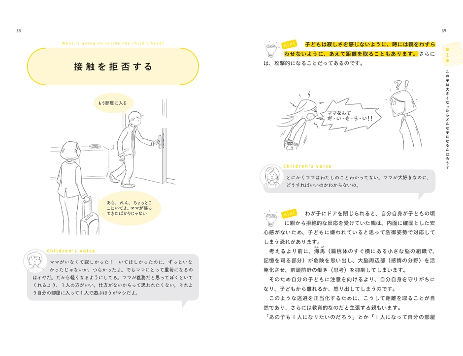 本書では、親と子のパワーバランスで特徴づけられることが多いこの時期を最新の神経科学や実践心理学に基づき、子どもの話を聞くこと・同調することに焦点を当て、子どもの行動の裏にある動機を分析してする方法を、シチュエーションごとにかわいいイラストを交えてわかりやすく解説していきます。