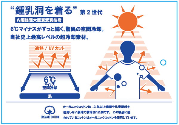 着た感覚はまるで “鍾乳洞” にいるかのような、「LSC TEE」が機能性の向上で「6℃マイナス」を実現。