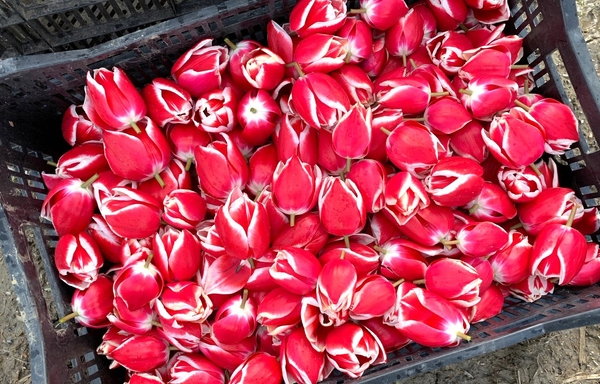 当イベントに先駆けて、4月16日に富山南警察署の職員さんや交通安全協会の皆さんが参加し、チューリップの花の摘み取り作業が実施されました。参加者は約1時間半の作業に取り組み、トラックいっぱいの花が摘み取られました。