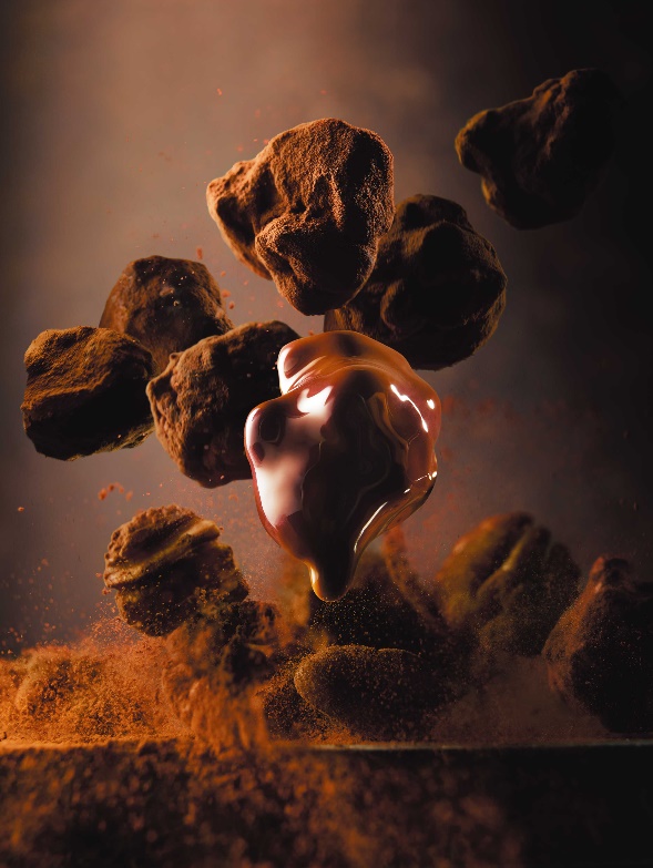 パウダーをまとったトリュフチョコレートのようですが、噛むとカリカリのキャラメルと、ふんわりしたポップコーンが絡み合う新食感もエレガント。まさに贅沢をほおばったような満足感あふれる一品に仕上がりました。