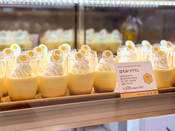 はちみつだけの甘さで仕上げた生クリームが自慢の「はちみつショートケーキ」をはじめ、6種類のカットケーキや、新作の「はちみつプリン」も販売。