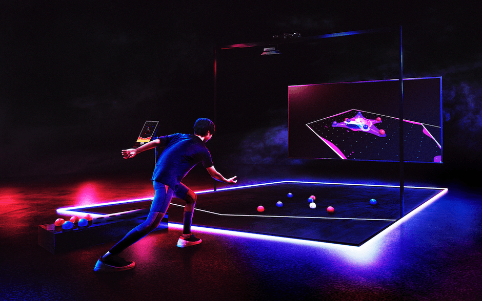 『CYBER BOCCIA S(サイバーボッチャ エス)』は、東京2020パラリンピックの正式種目でもある「ボッチャ」を、ルールはそのままにデジタル要素を加えエンターテインメント性を高めたコンテンツ。センシング技術でボールの位置を自動計測し、リアルタイムで状況を判断します。また、3DCGプロジェクションなどのグラフィック技術を駆使して、ゲームの戦況を視覚的に伝えます。ダイナミックな映像表現により、対戦の様子や盛り上がりの瞬間が直感的に理解できるようになりました。