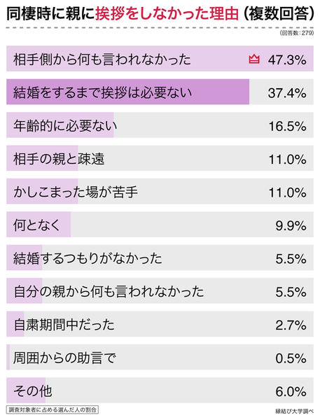 では、同棲時に挨拶をしなかった理由も、同じように「結婚」に対する意識が影響しているのでしょうか。