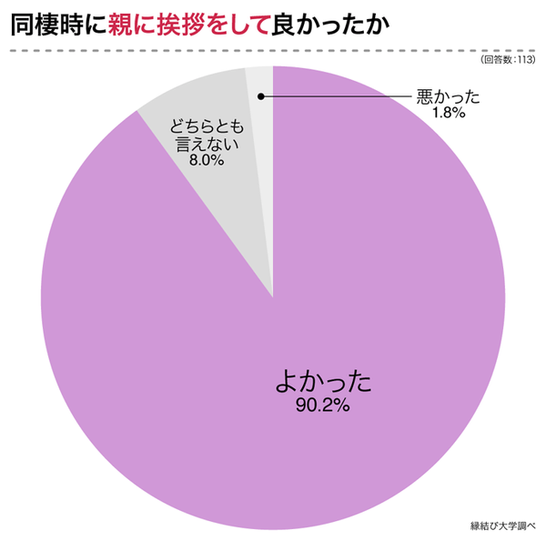 同棲時に親への挨拶は必要?「挨拶してよかった」が8割、「挨拶せずに後悔」が1割