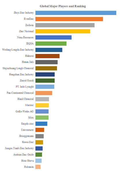 YHResearchのトップ企業研究センターによると、酸化亜鉛の世界的な主要製造業者には、Zhiyi Zinc Industry、EverZinc、Zochem、Zinc Nacional、Nexa Resources、IEQSA、Hakusui、Weifang Longda Zinc Industry、Henan Jinli、Shijiazhuang Longli Chemicalなどが含まれている。2023年、世界のトップ10企業は売上の観点から約35.0%の市場シェアを持っていた。