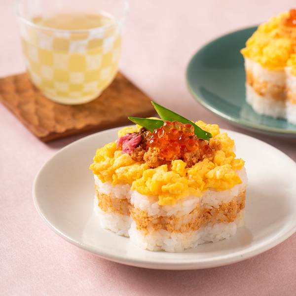 春のおすすめアレンジレシピは、ピリッと辛みが効いた「押し寿司」!炒り卵や贅沢にいくらをトッピングすれば、華やかさがぐっとアップします。入学式などのお祝いの席や春の食卓を彩る、見た目にも美しい一品です。