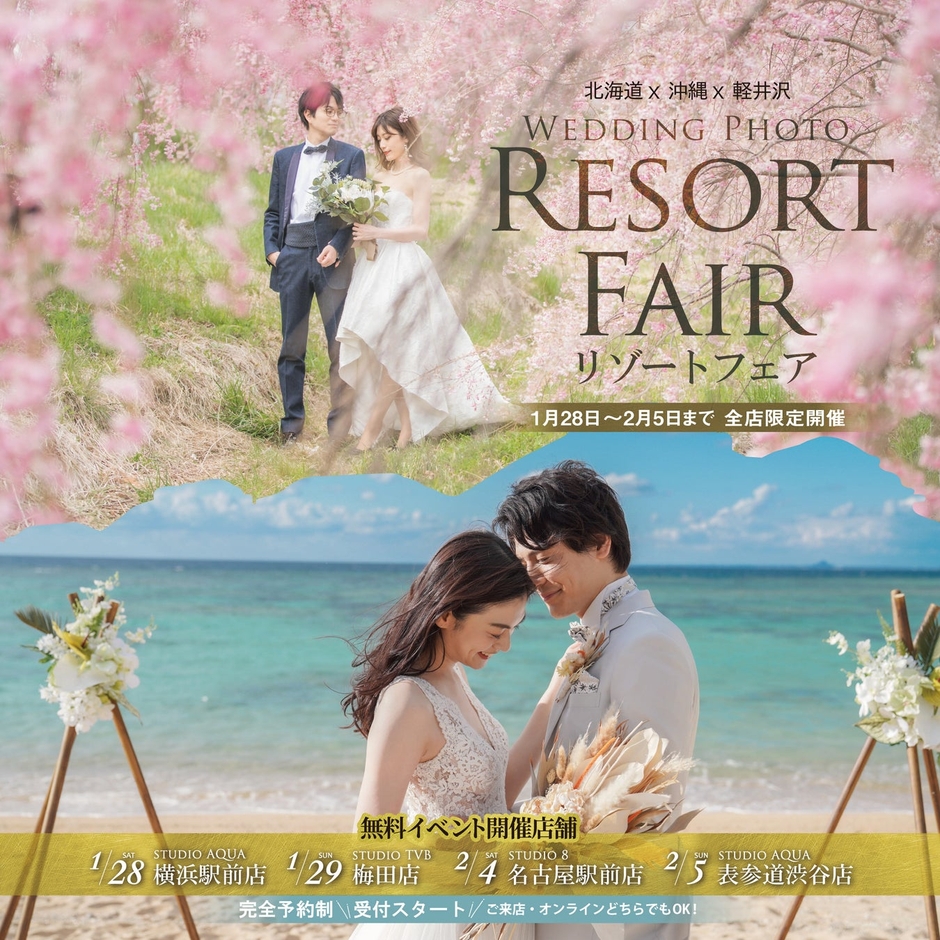 フェア開催期間中に北海道・沖縄・軽井沢での撮影をご成約のお客様に、最大5万円OFFが当たるリゾート限定ガラポンをご用意しております。