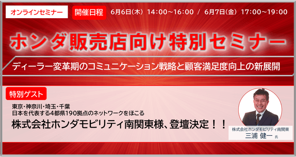 「株式会社ホンダモビリティ南関東様」登壇! 6/6、6/7 二日間開催のホンダ販売店向け特別セミナー ディーラー変革期のコミュニケーション戦略と顧客満足度向上の新展開