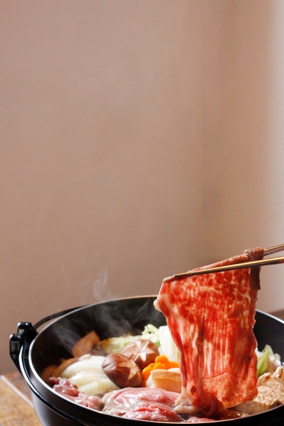お召し上がりいただく作法にも追求し、肉の上にザラメ、醤油をかけて焼いていただき、まずはお肉だけで本来の美味しさをご堪能いただくことをご提案し、その後は、割下と全ての具材を入れ手から肉を乗せるスタイルでも良し。お好みの野菜を焼いていき水分と肉汁で具材を焼いていただくでも良し。