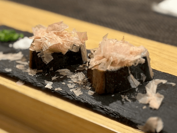 ステーキのような食べ応えと、かつお節ならではの香り高さを兼ね備えた一皿です。