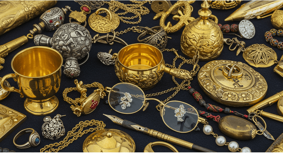 金メッキ製品: アクセサリーやブランド食器など。表面の金に価値があるため、査定額がつくケースが増加